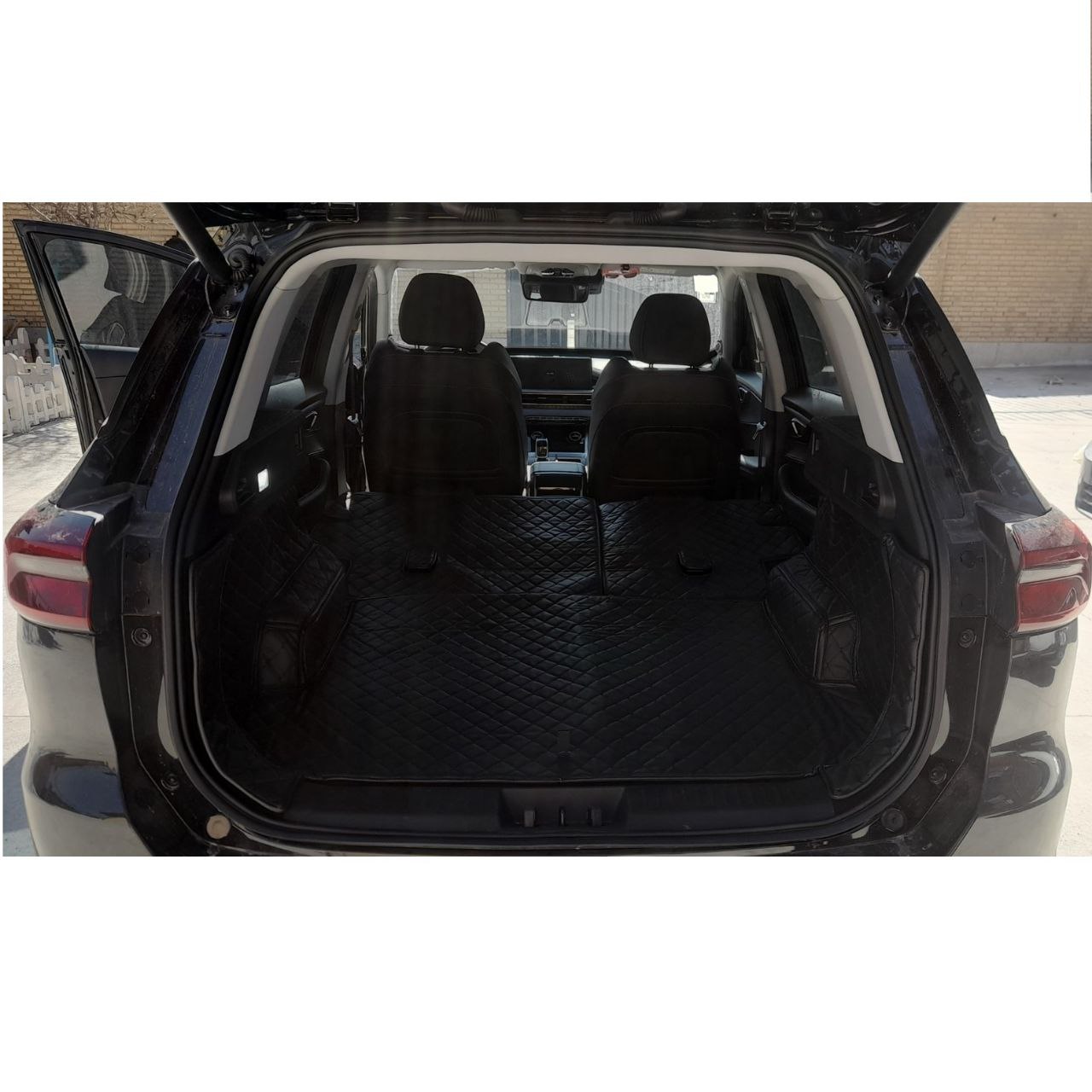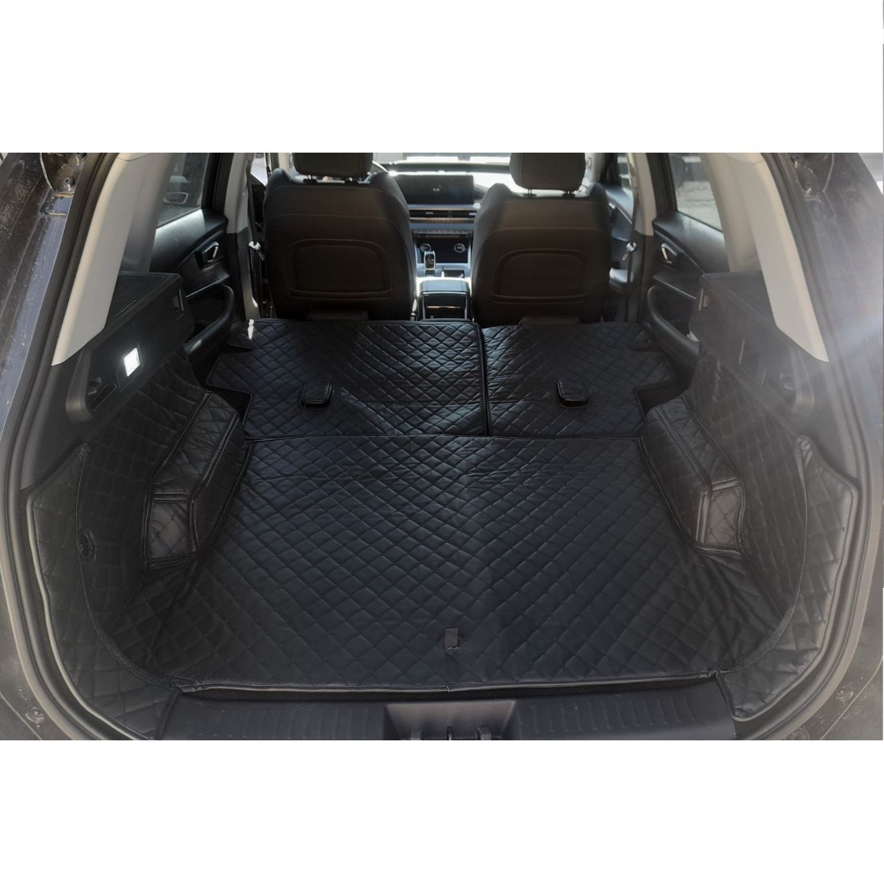کفپوش صندوق عقب تیگو ۷ پرو هیبرید ای پلاس، یک پوشش کامل، مدرن و بینظیر را برای این خودرو فراهم میکند. همه دیوارههای بلند کناری فضای صندوق با کفپوش مدل الماس اکسسیتی آراسته میشوند. این دیوارههای کناری به کفپوش کف صندوق دوخته شدهاند و بنابراین هیچ زبالهای به خارج از پوشش ایجادشده راه نمییابد. همچنین در دو دیواره دو جیب اضافه شده است تا وسایل شما در آنجا قرار بگیرد. در دیواره بلند سمت چپ صندوق، کارخانه چری یک پورت USB برای شما در نظر گرفته است. نگران نباشید. ما آن را از دسترس خارج نکردهایم، بلکه حفرهای به اندازه قطر آن در نظر گرفتهایم تا همیشه در دسترس شما باشد. همچنین درزی در کفپوش تعبیه شده است که از طریق آن میتوانید بند جعبه ابزار خودرو را عبور دهید.