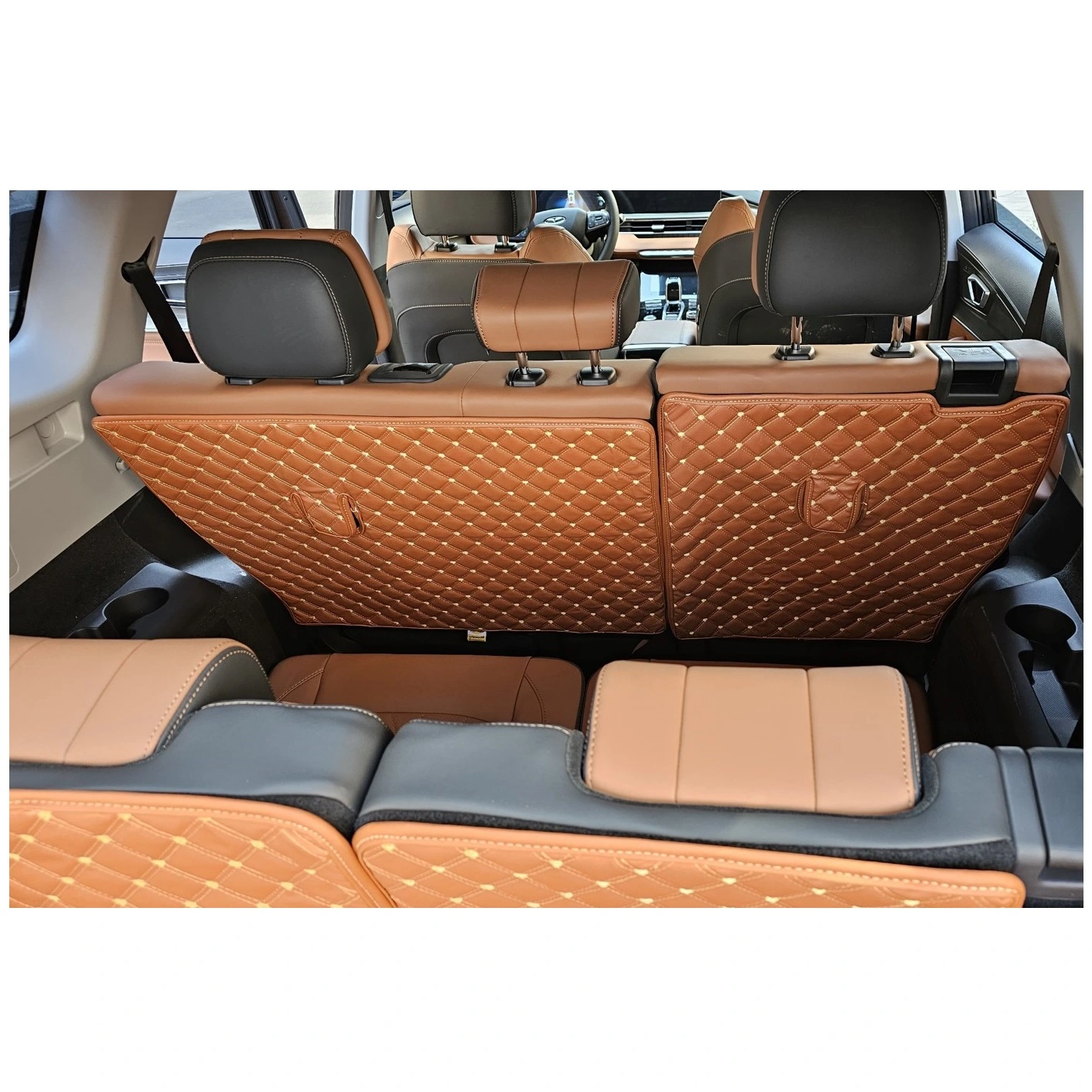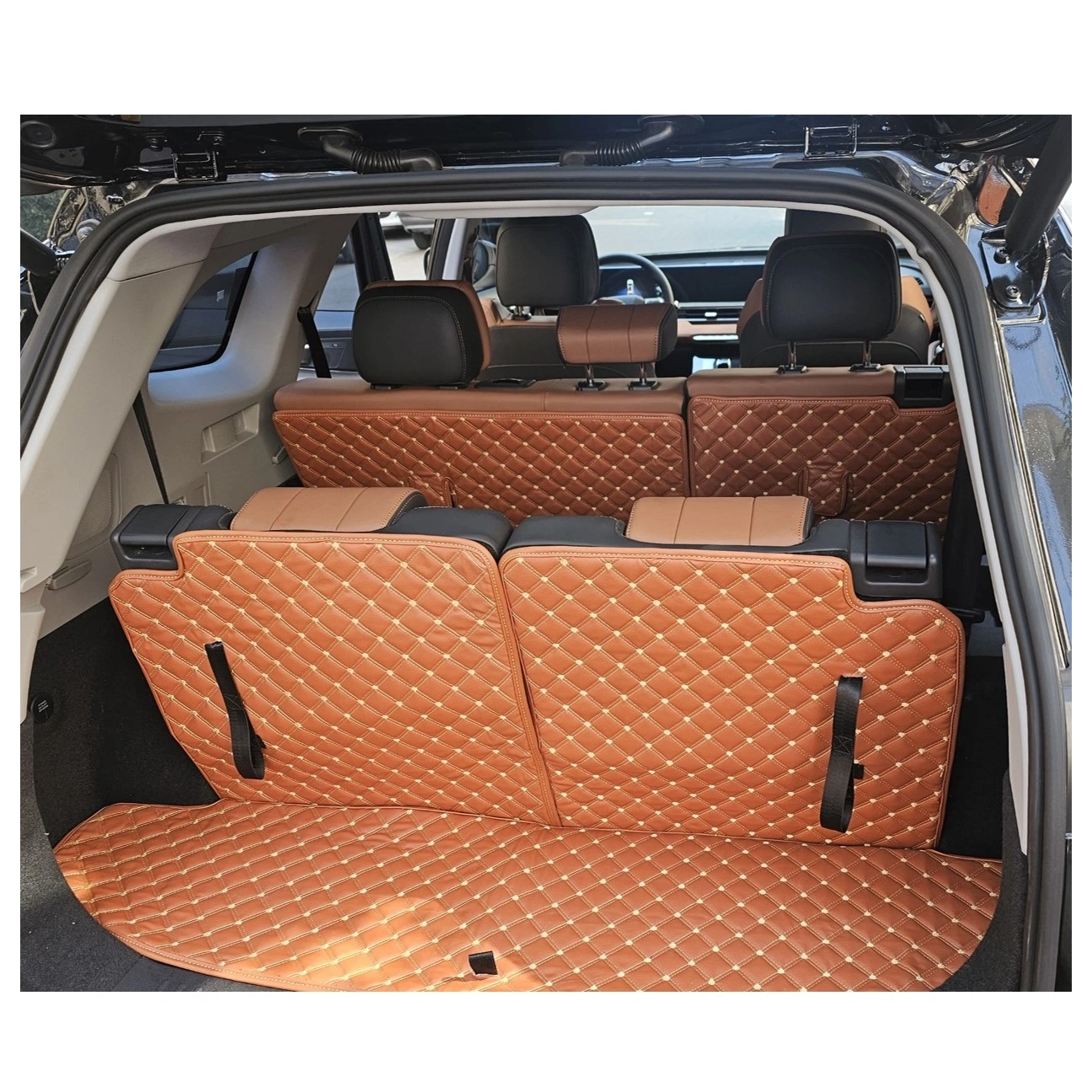 از آن جا که تیگو ۸ پرومکس خودرویی هفت صندلی محسوب میشود، بنابراین گاهی لازم است صندلیهای ردیف سوم این خودرو هم باز و فعال شود. در چنین شرایطی یک کفپوش صندوق عقب مطلوب باید با شرایط جدید چیدمان صندلیها هماهنگ شود و علاوه بر حفظ پوشش اولیه خود، مانعی برای باز کردن صندلیهای ردیف سوم ایجاد نکند. محصول اخیر نیز برای برآورده کردن شرایط مذکور، در ۵ قطعه مجزا تولید شده است. قطعه اول فضای بسیار محدود بار در حالت باز بودن صندلیهای ردیف سوم را پوشش میدهد، قطعات دوم و سوم که قرینه یکدیگر هستند، با چسبهای زبر به موکت فابریک پشت صندلیهای ردیف سوم متصل میشوند، بنابراین هم در حالت عمودی و هم در حالت افقی کاملا متصل و تابع شرایط صندلیهای ردیف سوم هستند. همین ویژگی در مورد قطعات چهارم و پنجم این کفپوش که به پشتی صندلیهای ردیف دوم متصل میشوند، وجود دارد. ضمنا ضرورت دسترسی به بندهای بالابر جعبه ابزار و صندلیها و همچنین گیرههای محل اتصال صندلی کودک در این محصول پیشبینی شدهاند. با تهیه این محصول برای خودروی لوکس تیگو ۸ پرومکس، هر بار که درب صندوق خودرو را باز میکنید با منظرهای زیبا، آراسته و چشمنواز مواجه خواهید شد. نصب و همچنین خروج قطعات برای تکاندن یا شستشو بسیار ساده است. این کفپوش عایق رطوبت است و پس از شستشو در زمان بسیار کوتاهی خشک میشود.